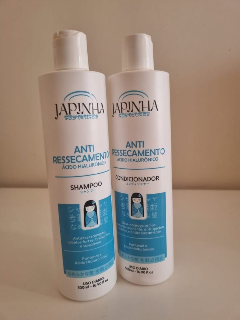 Se você tá procurando um shampoo e condicionador bom, barato e cheiroso, eu te apresento a linha Japinha Shampoo e Condicionador – um kit de
