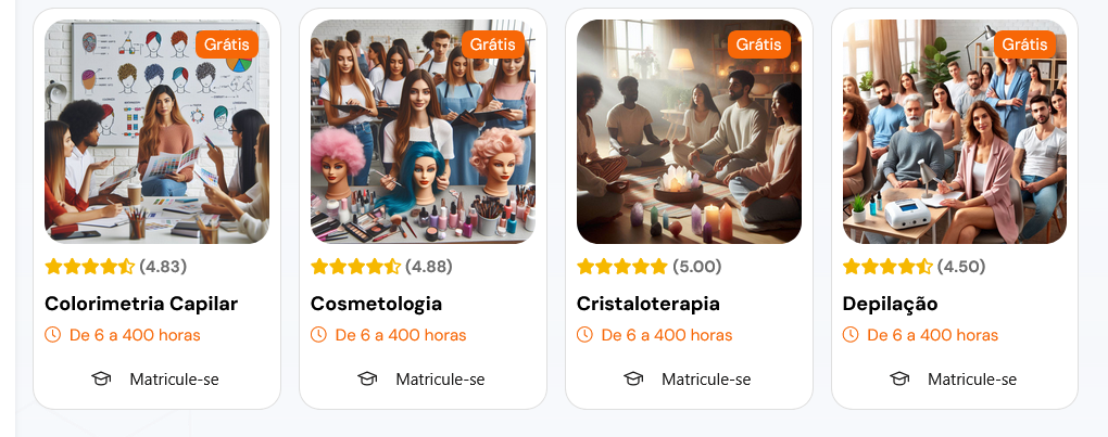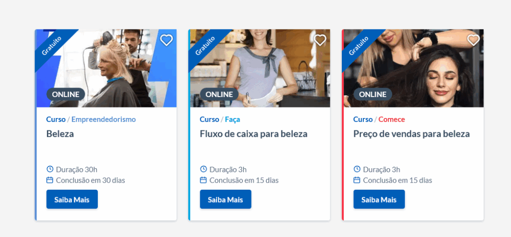 Eles têm cursos em diversas áreas e na área de beleza você encontra cursos gratuitos como automaquiagem, design de sobrancelhas, maquiagem básica, extensão de cílios e outros que agregam o dia a dia de quem trabalha com embelezamento. Todos os cursos dão para fazer no seu ritmo, e tem a opção de certificação paga.