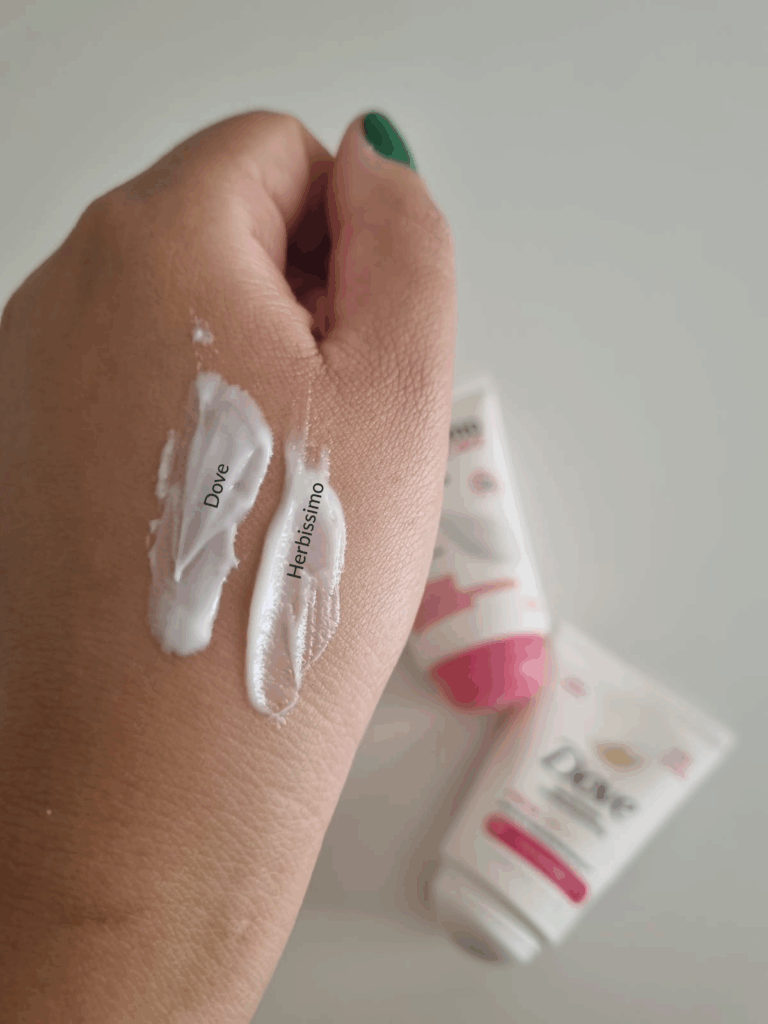 Eu, como uma pessoa que tem várias alergias com perfume em cosméticos, achei que esses dois desodorantes passaram no meu teste de não arder. A maior diferença entre os dois foi que com o Dove eu senti minha axila mais hidratada do que com o Herbíssimo.